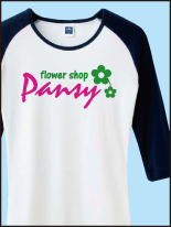 【47】 3/4リブラグランTシャツ (ホワイト×ネイビー) フルカラープリント |