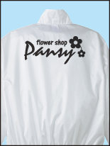 写真のようなロゴの入ったウエアもお見積もりさせて頂きますのでお問合せ下さい。